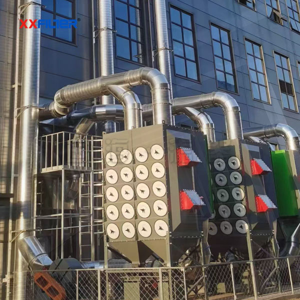 1.高效過(guò)濾:濾筒除塵器采用高效的過(guò)濾材料,如L806(防靜電)聚酯無(wú)紡布,能夠捕捉并去除焊接煙塵中的微小顆粒和有害氣體,確保排放的空氣質(zhì)量達(dá)到國(guó)家標(biāo)準(zhǔn)。其過(guò)濾精度可達(dá)到0.3-0.5μm,過(guò)濾效率高達(dá)99.99%。