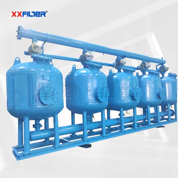 5罐并聯(lián)淺層砂過濾器是水處理及污水凈化除去固體懸浮物和其它雜質(zhì)是經(jīng)濟(jì)有效的解決方案,過濾器可以有效地去除原水(或廢水)中懸浮顆粒物及膠體物等雜質(zhì)。市場(chǎng)上的污水處理設(shè)備一般都是連續(xù)的,即不需要配置清水池和大功率反沖洗水泵,使過濾操作得以續(xù)穩(wěn)定的運(yùn)行,具有過濾效率高、能耗低、操作簡便等優(yōu)點(diǎn),可廣泛應(yīng)用于各種水處理工藝。